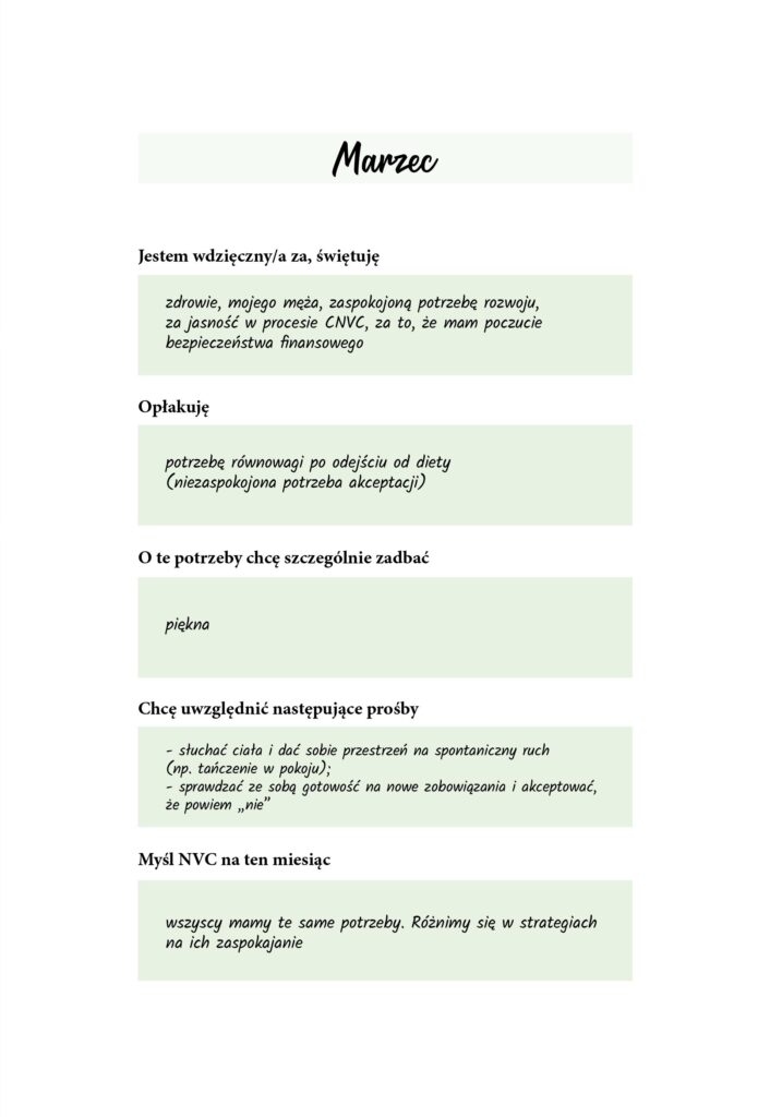 Dziennik powstał po to, aby ułatwić mi – i mam nadzieję innym – wzrastanie w życiu opartym na Porozumieniu bez przemocy (NVC) oraz, w moim przypadku, przygotowań do certyfikacji CNVC.